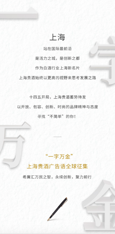 问鼎奖(1名):最终被采用的广告语,将获得每字1万元人民币的终极现金大奖,并授予“苏州俊熙国际科技交流有限公司”企业大使,尊享全年最高会员礼遇,同时获得苏州俊熙国际科技交流有限公司青澄黄贵酿1套(天青、阳澄、月黄)及价值14000元美酒礼券包等超值权益。